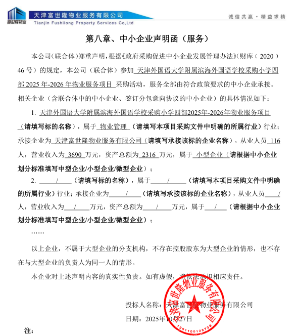 天津外国语大学附属滨海外国语学校采购小学四部2025年-2026年物业服务项目(项目编号:TJBH-2025-D-0161)中标结果公告