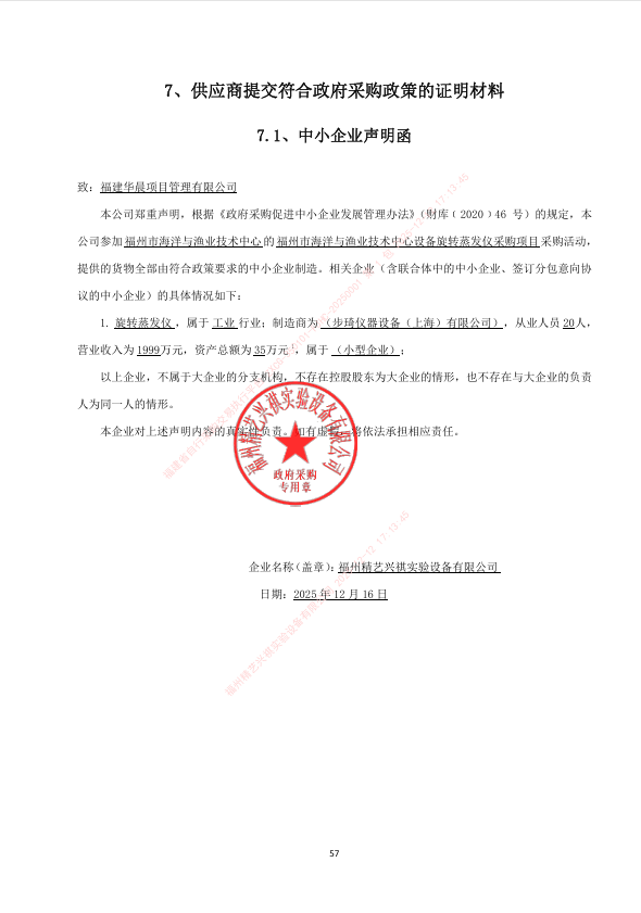 福州市海洋与渔业技术中心旋转蒸发仪采购项目结果公告(采购包1)